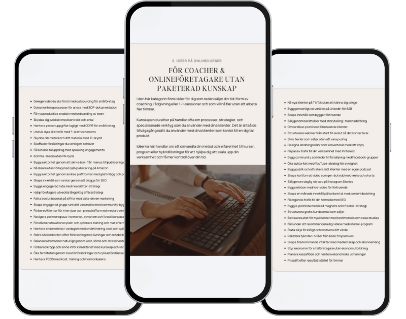 Oavsett om du är ny till onlinevärlden eller redan arbetar som coach, konsult, expert eller kreatör finns här idéer som hjälper dig ta nästa steg 🙌